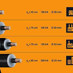 Os novos cabos isCon® de tipo Basic, Professional, Professional+ e Premium mantêm as distâncias de separação de 45 a 90 cm, consoante as necessidades para as mais diversas situações de aplicação (segundo a VDE 0185‐305‐3).