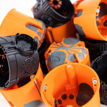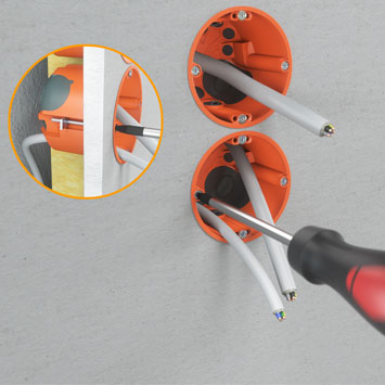 Here too, the flush-mounted and cavity wall boxes can score with regard to sustainability: The entire portfolio is 100% halogen-free, ensuring additional safety in case of fire, as this reduces the creation of toxic smoke gases. In addition, the air-tight variants of the cavity wall boxes are tested and certified for noise protection and achieve noise insulation of 70 dB without weakening the standard dry construction wall.