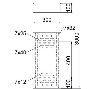 O caminho de cabos em chapa apresenta, nas extremidades, as abas perfuradas.