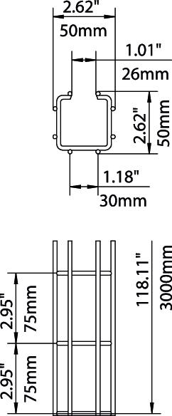Descrição do produtoCaminho de cabos em varão em forma de C com varões de aço soldados por pontos com 50 mm de altura lateral.