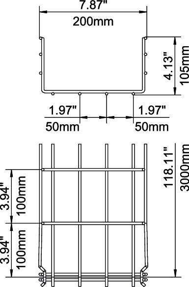 Para o caminho de cabos em varão não são necessários outros componentes de ligação, estes são simplesmente encaixados uns nos outros. A largura de malha é de 50 x 100 mm.