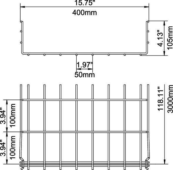 Descrição do produtoCaminho de cabos em varão com união de encaixe rápido com 105 mm de altura lateral.
