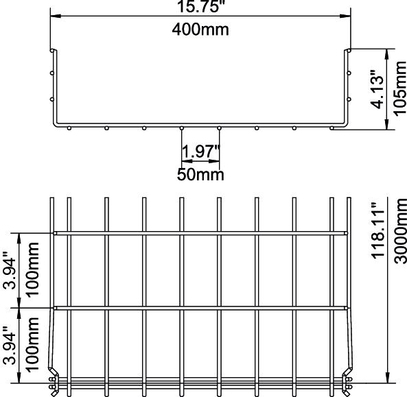 Descrição do produtoCaminho de cabos em varão com união de encaixe rápido com 105 mm de altura lateral.