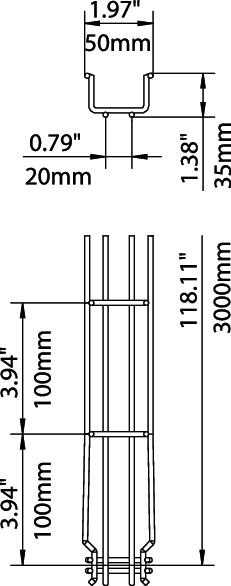 Descrição do produtoCaminho de cabos em varão com união de encaixe rápido com 35 mm de altura lateral.