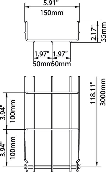 Para caminhos de cabos em varão não são necessários outros componentes de ligação, estes são simplesmente encaixados uns nos outros. A largura de malha é de 50 x 100 mm (exceção GRM 55/50 = 20 x 100 mm).