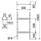 Descrição do produtoCaminho de cabos tipo escada com aba perfurada de 60 mm com degraus em perfil C, rebitados e abertos para cima (versão VS).