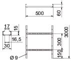 Descrição do produtoCaminho de cabos tipo escada com aba perfurada de 60 mm com degraus em perfil C, rebitados e abertos para cima (versão VS).