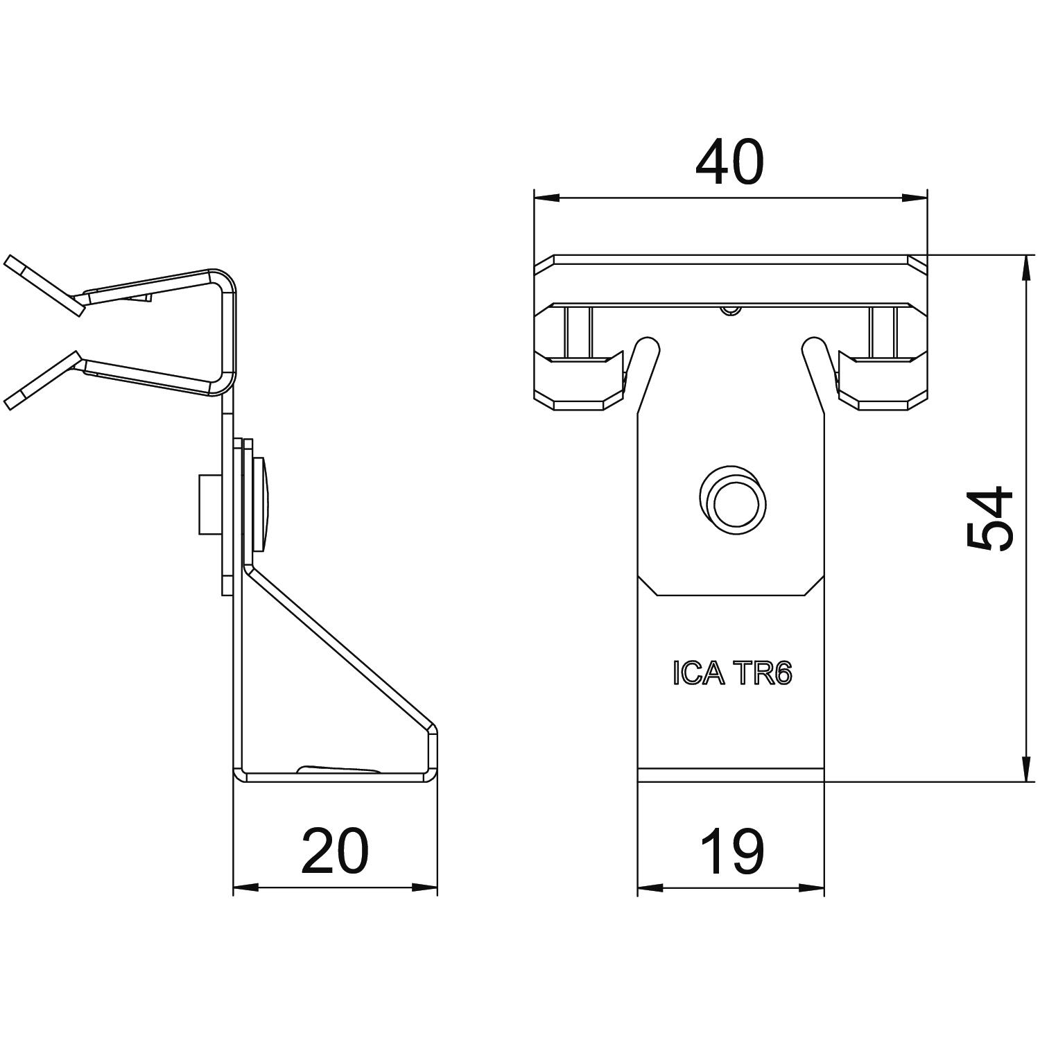 Descrição do produtoClip de suspensão com alojamento para varão roscado para soluções de montagem personalizadas. Fixação a vigas de aço por martelagem.