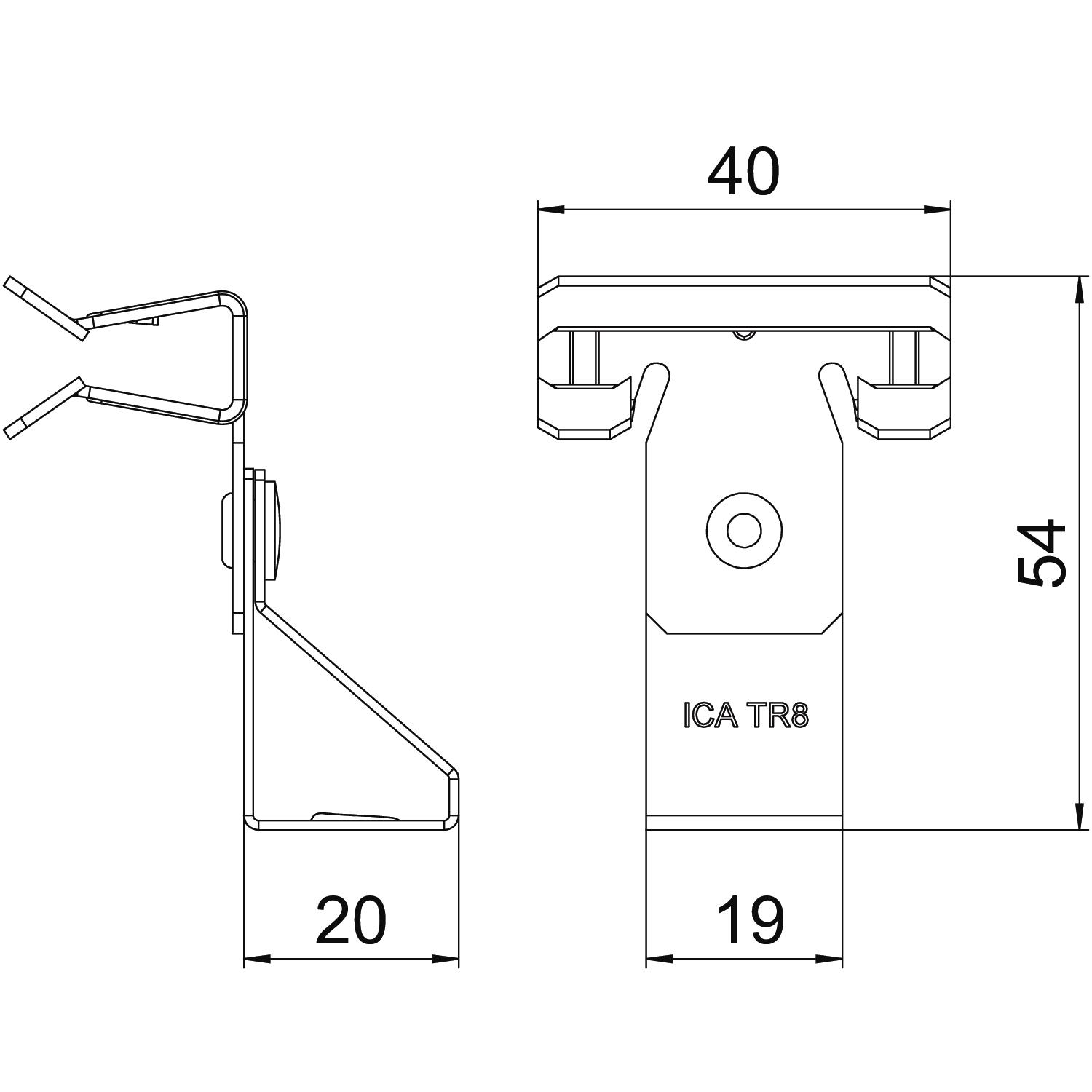 Descrição do produtoClip de suspensão com alojamento para varão roscado para soluções de montagem personalizadas. Fixação a vigas de aço por martelagem.