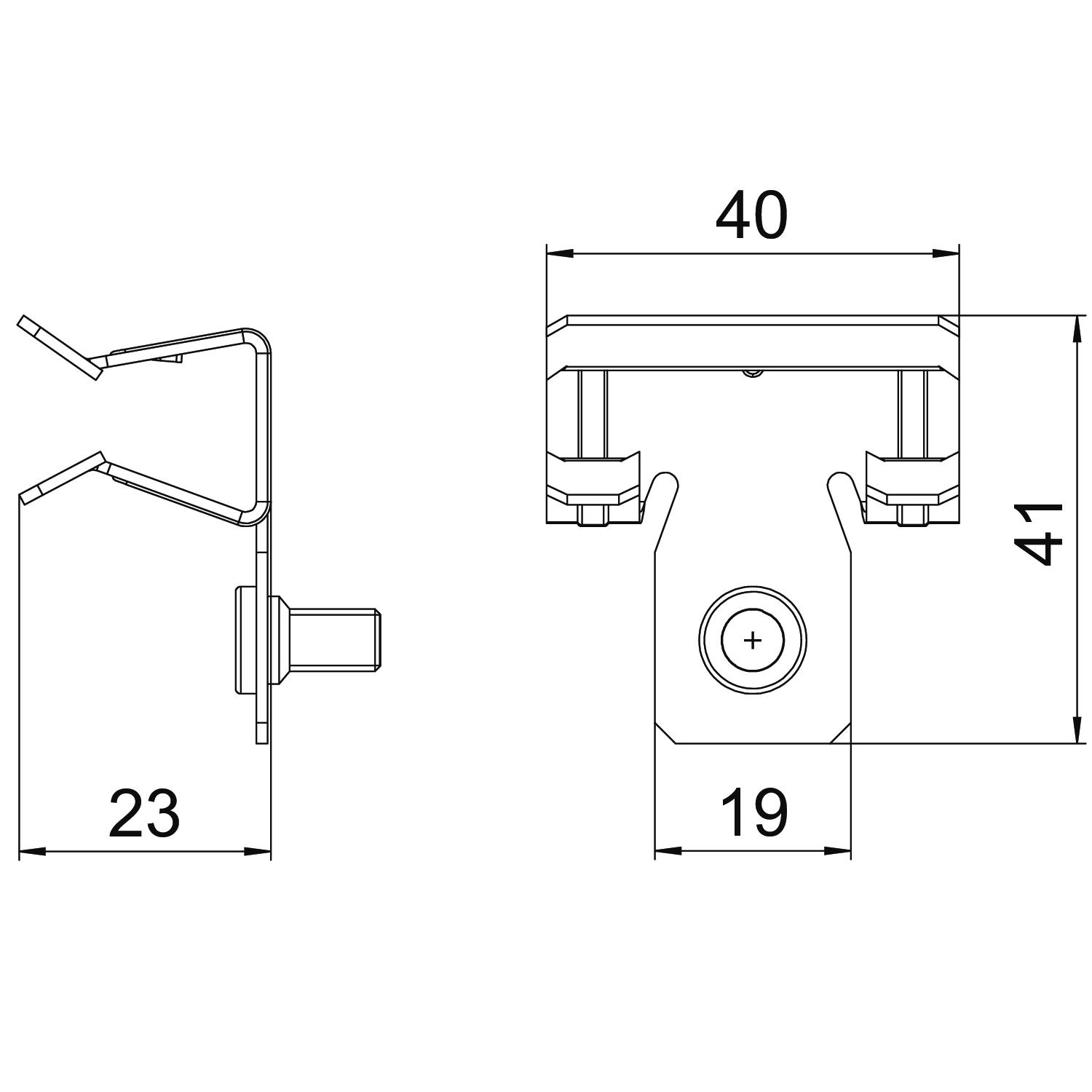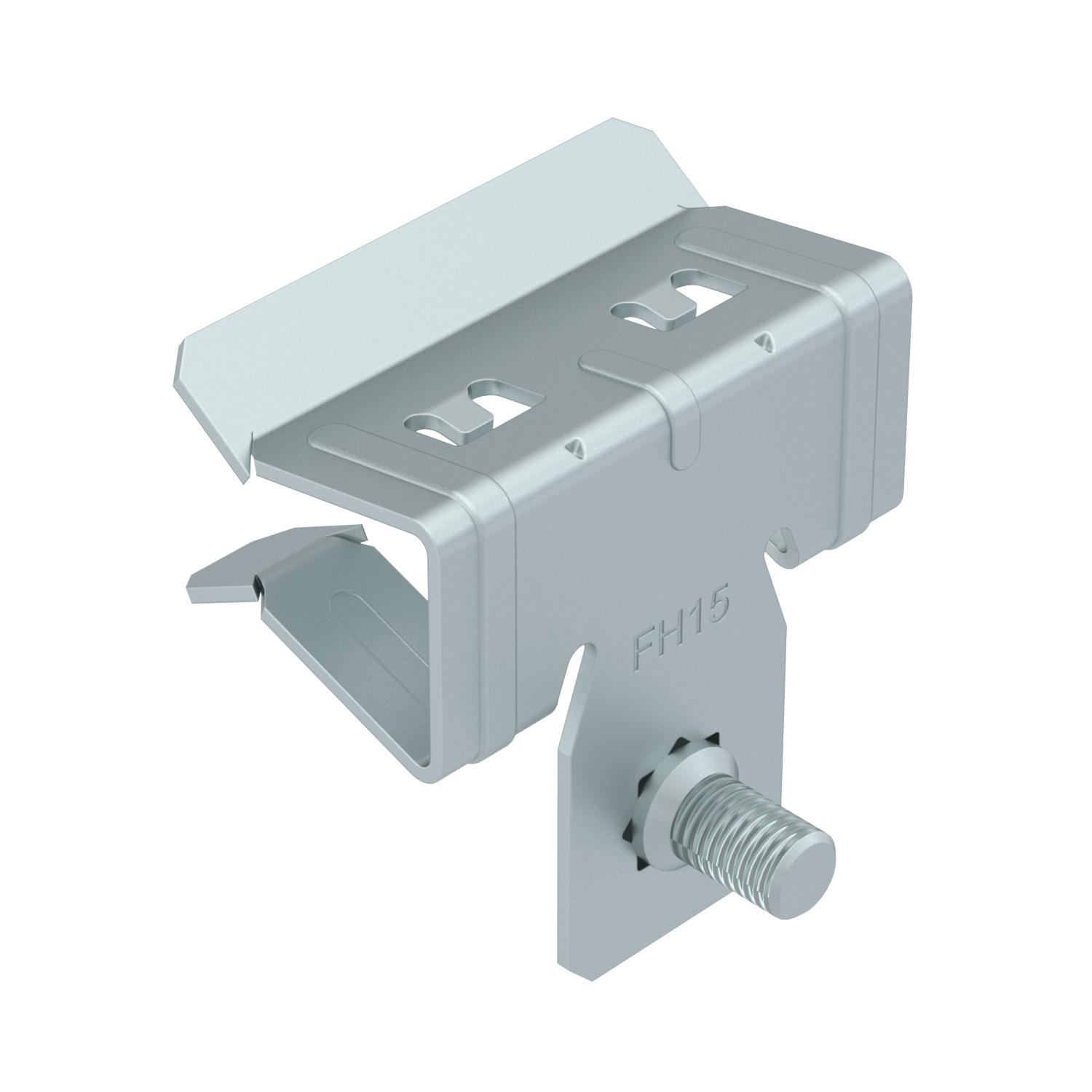 Descrição do produtoClip de suspensão com perno roscado M6 na lateral para soluções de montagem personalizadas. Fixação a vigas de aço por martelagem.