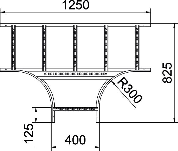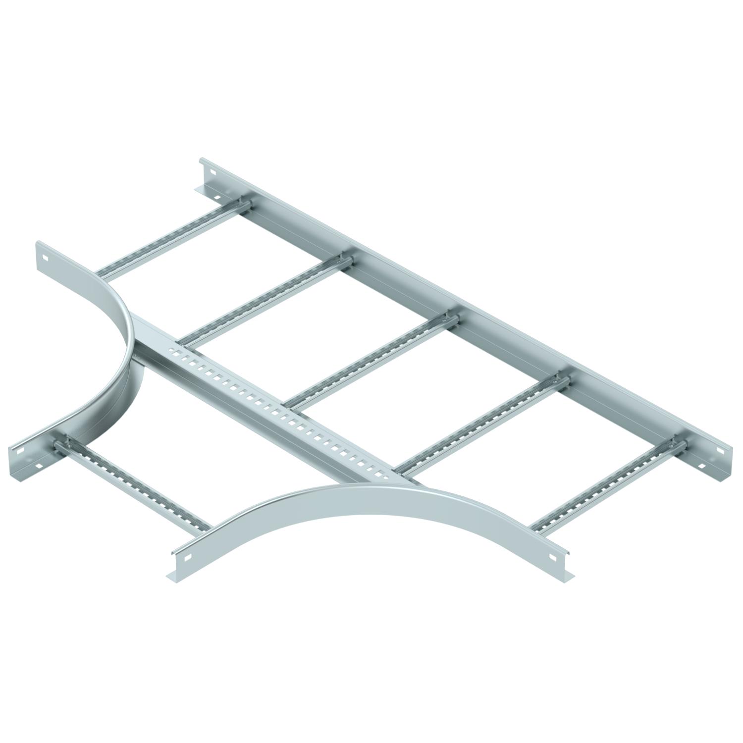 Descrição do produtoDerivação em T, horizontal, com degraus soldados para todos os caminhos de cabos tipo escada com uma altura lateral de 60 mm.