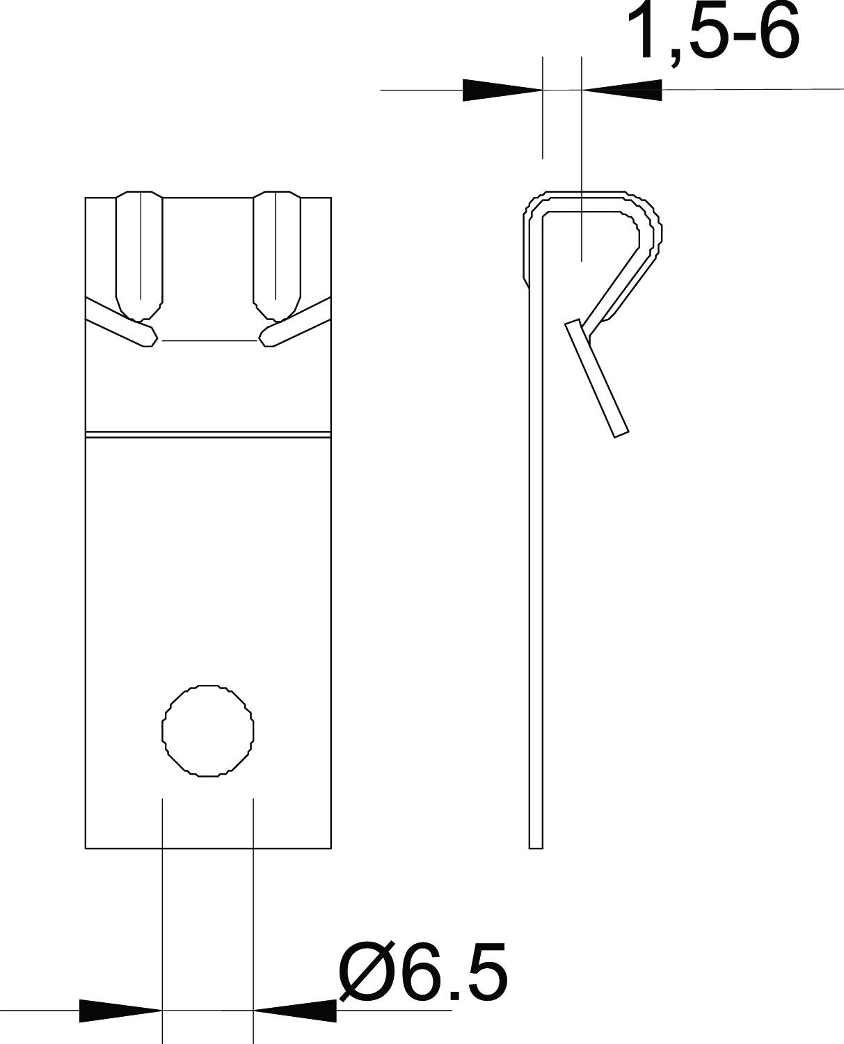 Altura 52 mm Carga de rutura 0,72 kN Dimensão 1,5-4mm Dobradiça não Dobradiça ajustável não Espessura do flange F máx. 4 mm Espessura do flange F mín. 1,5 mm Furo de fixação 7 mm Largura 10 mm Material Aço Medida H 52 mm Medida L 10 mm Superfície Lamela de zinco Tipo de fixação apertar - Todos os tipos